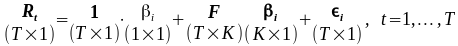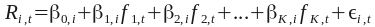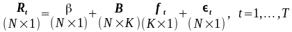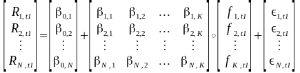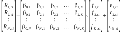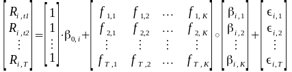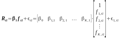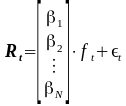 A cross sectional view of the factor model is shown in the equation below. Here the cross section is across a single unit of time, t1. Here the cross sectional return for all of the assets (I = 1..N) is calculated at time t1.