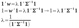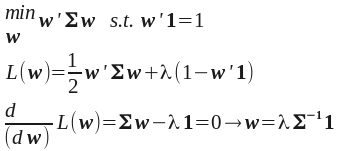 Derivation of the global minimum variance equation for long/short portfolio weights. Here the only constraint is that the weights must sum to 1.